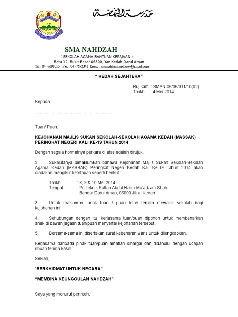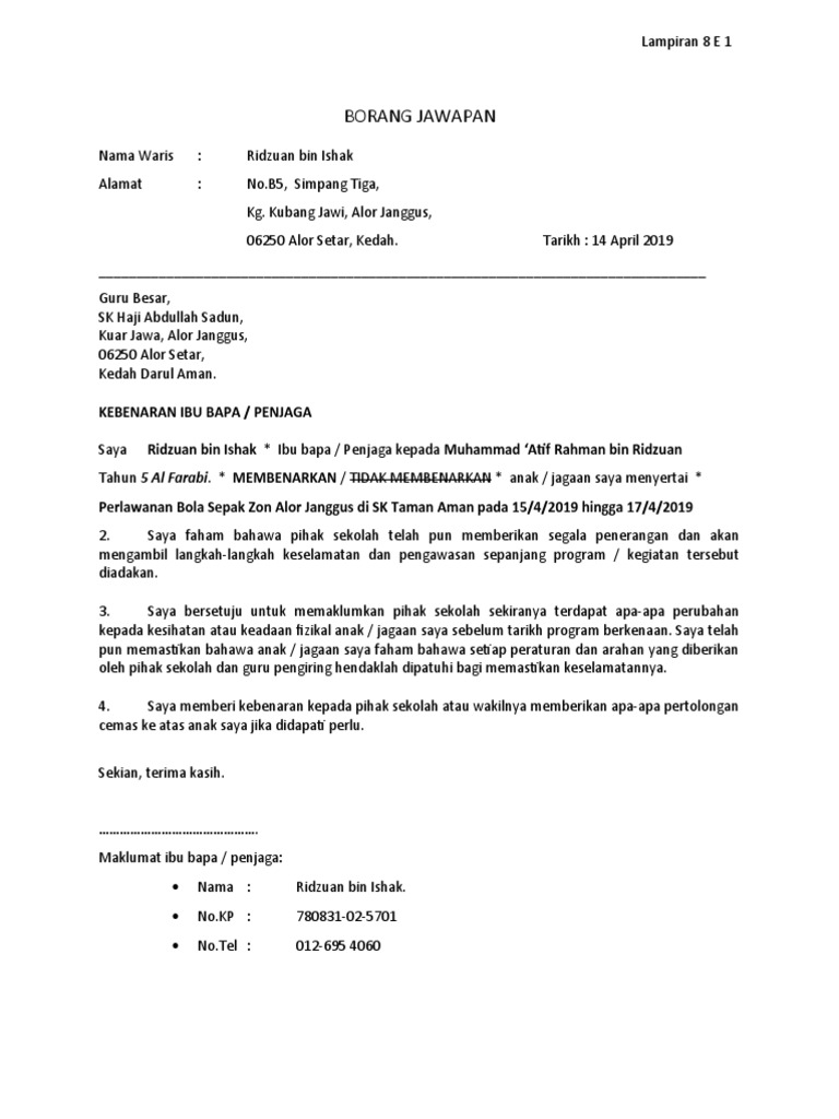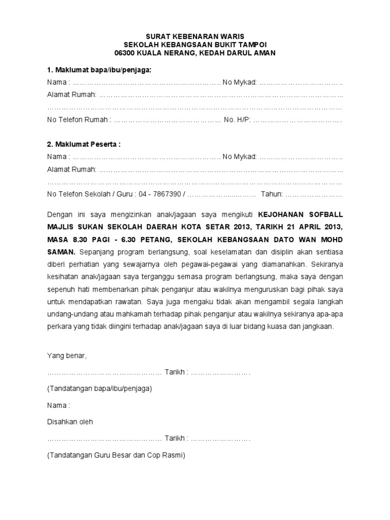 Contoh Surat Kebenaran Ibubapa Aktiviti Sukan Lawatan Dan Kokurikulum Di Sekolah Portal Cikgu